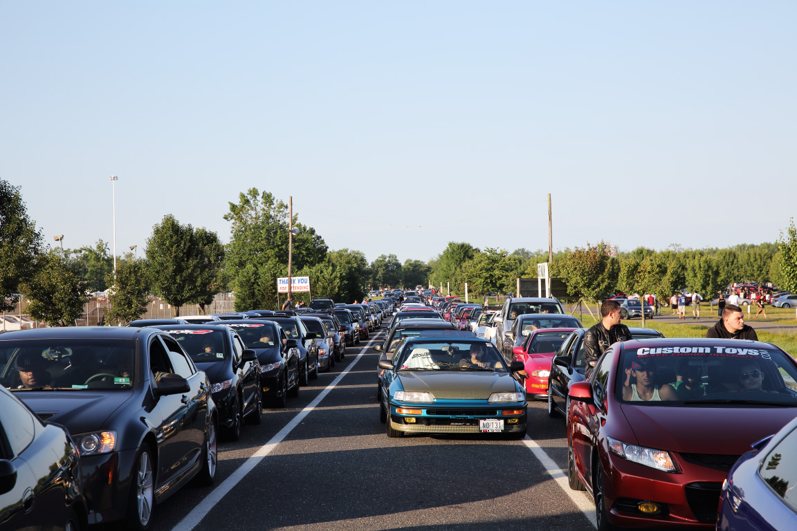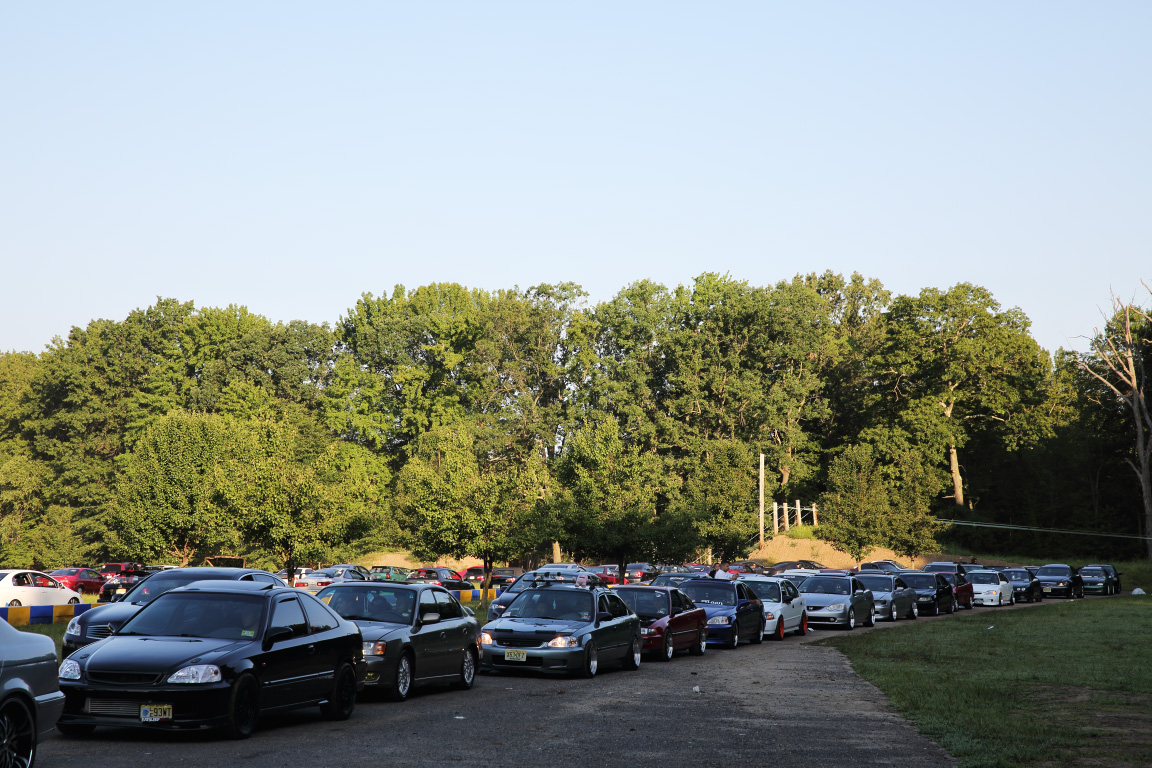 会場となるOld Bridge Township Raceway Parkへ続く道路はHonda車が10マイル以上もつながり、