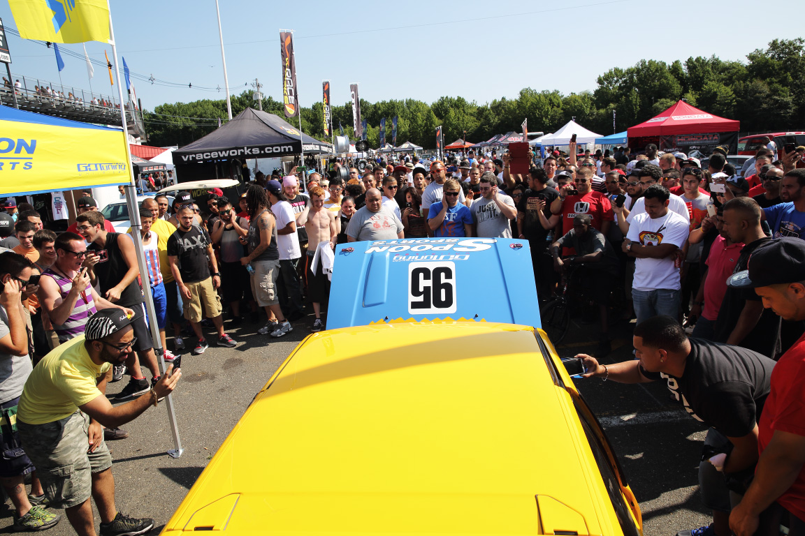 Old Bridge Township Raceway Parkのメイン会場からトラックへ移動する為にエンジンをかけると、あまりの爆音に人だかりができます。